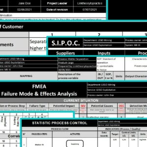 - Documents: Business case, VOC, SIPOC, Process Map, FMEA, Matrix XY and SPC